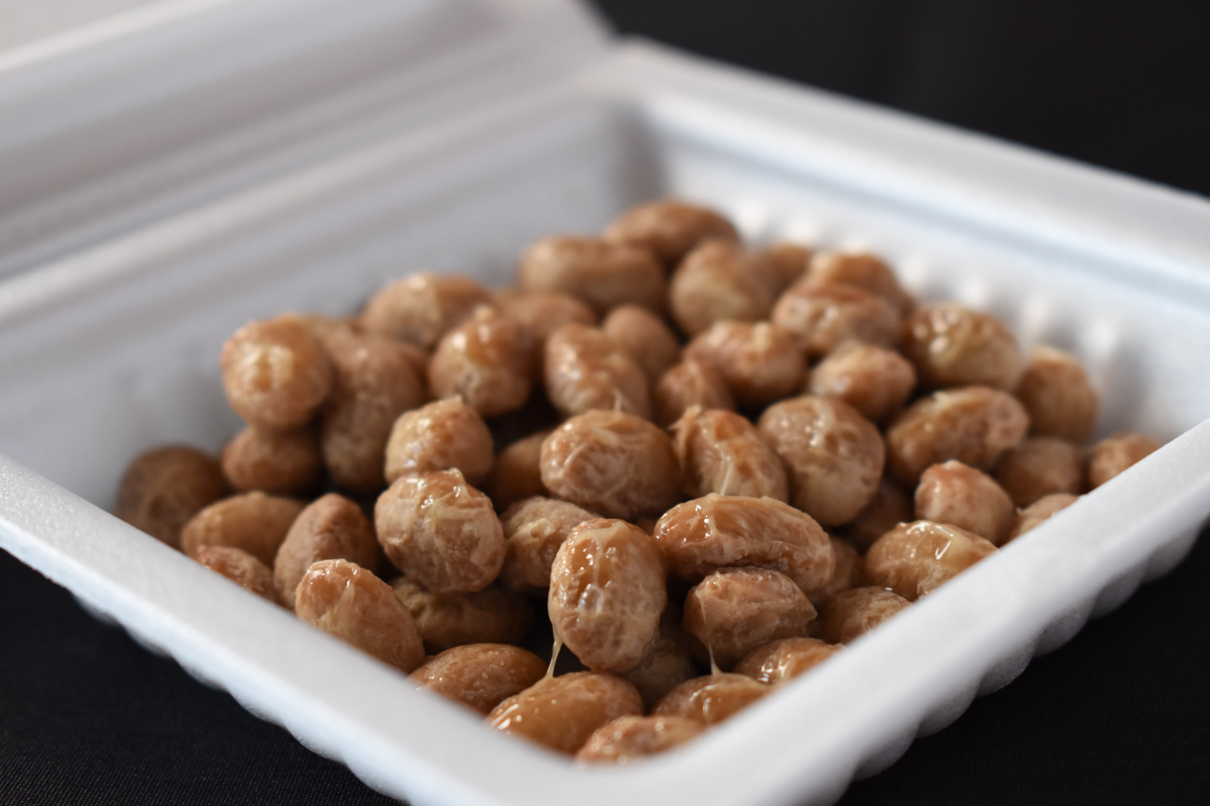 当別産大粒大豆(とよまさり)を100%使用し、丁寧にせいろで蒸しあげた昔ながらの製法で作った納豆です。